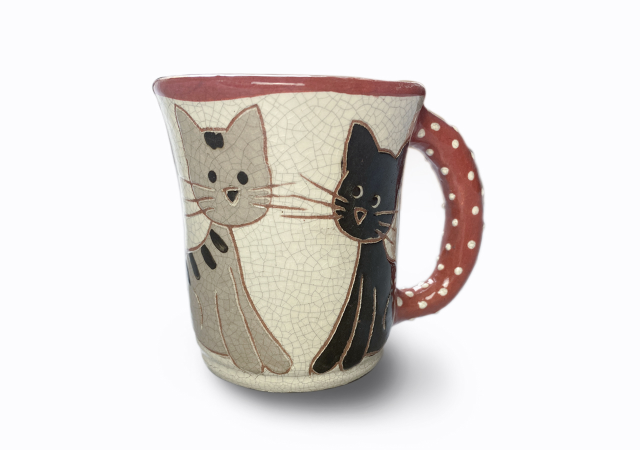 A két kiscica kedves társad lehet kávézás közben. Nagyon szeretik egymást, ezt jelzi a szív is a bögre fülénél. Vagy azt, hogy Te is szeretni fogod őket?