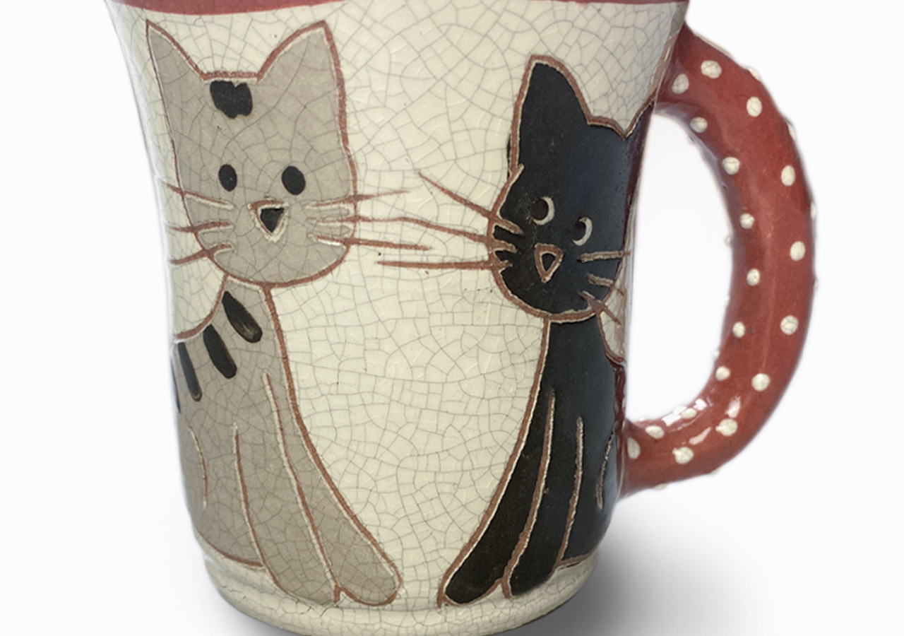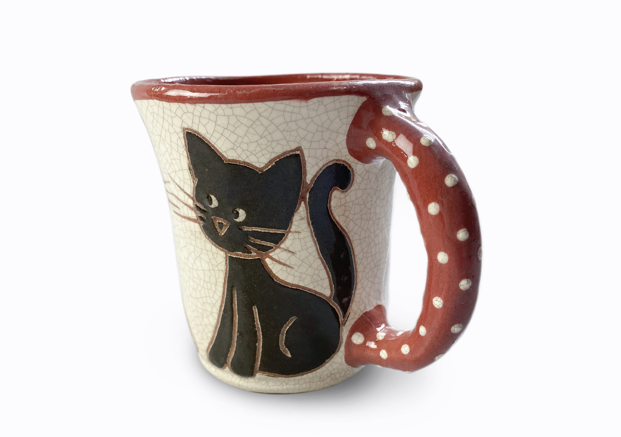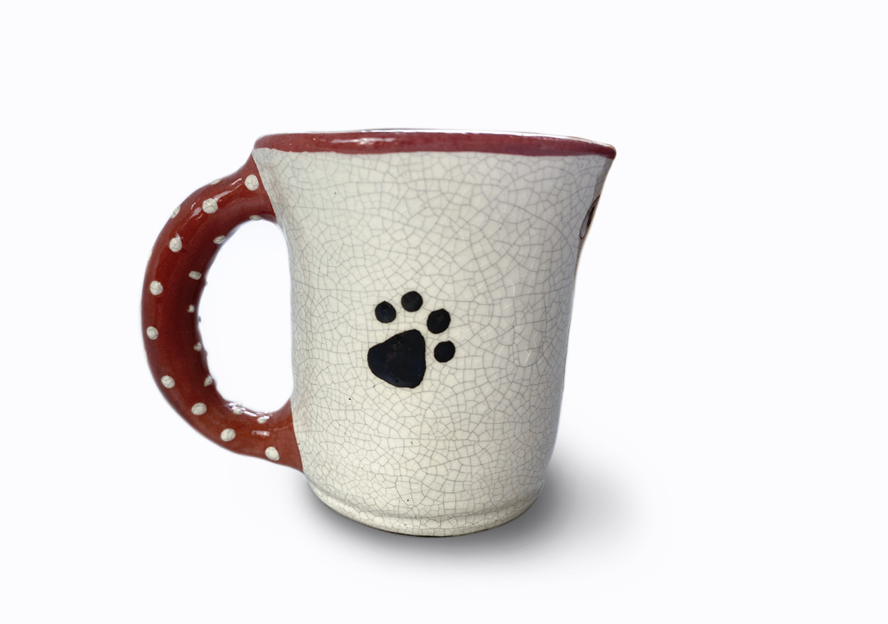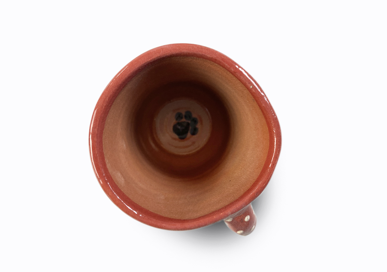 A kis bögre korongon készült, majd fülezés, szárítás és festés után többször magas hőfokon égett.