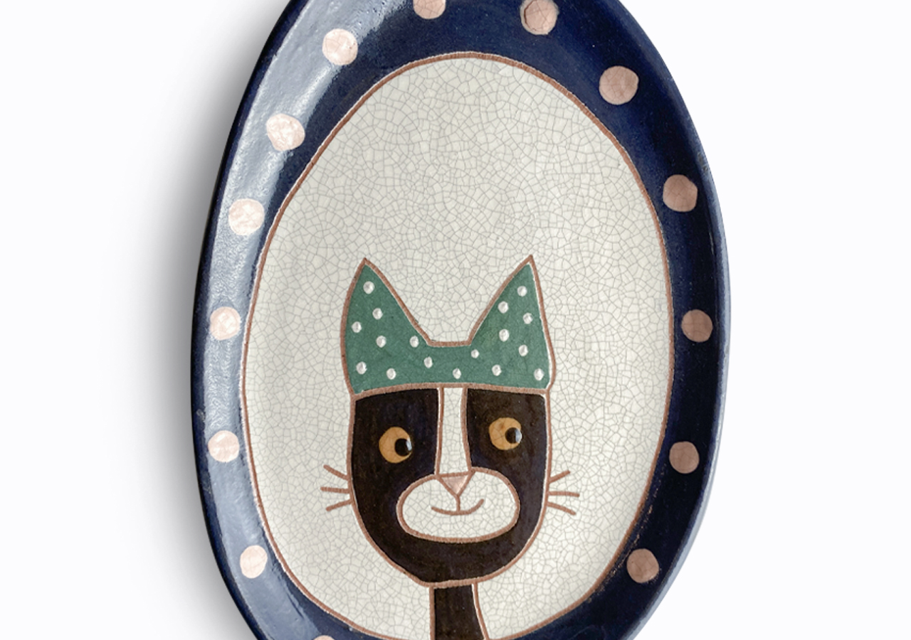 Éjjeli macskás ovális tál