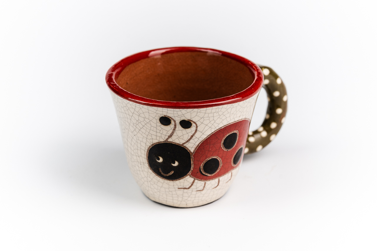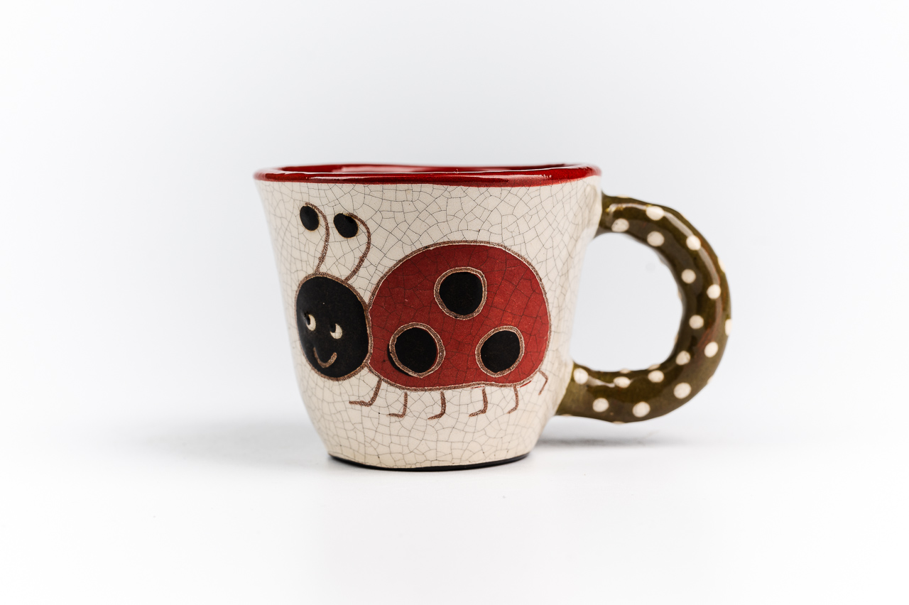 Szeretem a katicákat. Sokfélét sokféle tárgyra szoktam festeni. Kedves, vidám kis állat. Kis kávésbögrémről is rád mosolyog, vidámságra késztetve használóját. Jól indulhat a napod, ha ebből a kis bögréből iszod a reggeli kávédat.