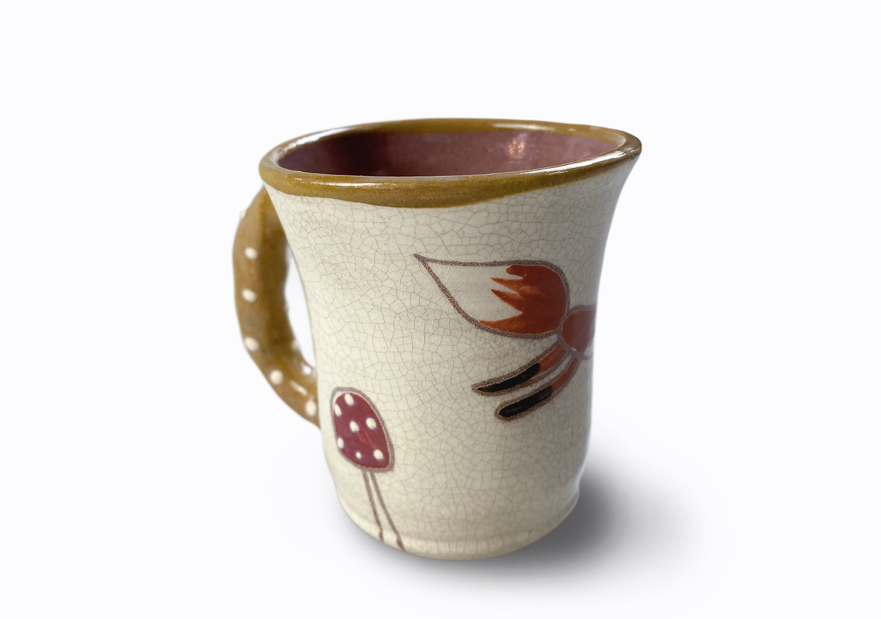 A bögrét korongon készítettem, majd felfüleztem, szárítottam és egyedi mintával festettem. 1000 fokon többször égettem, közben mázaztam. A végeredmény ez a rusztikus bögre, ami Rád vár, hogy a finom italodat kortyolgasd belőle!